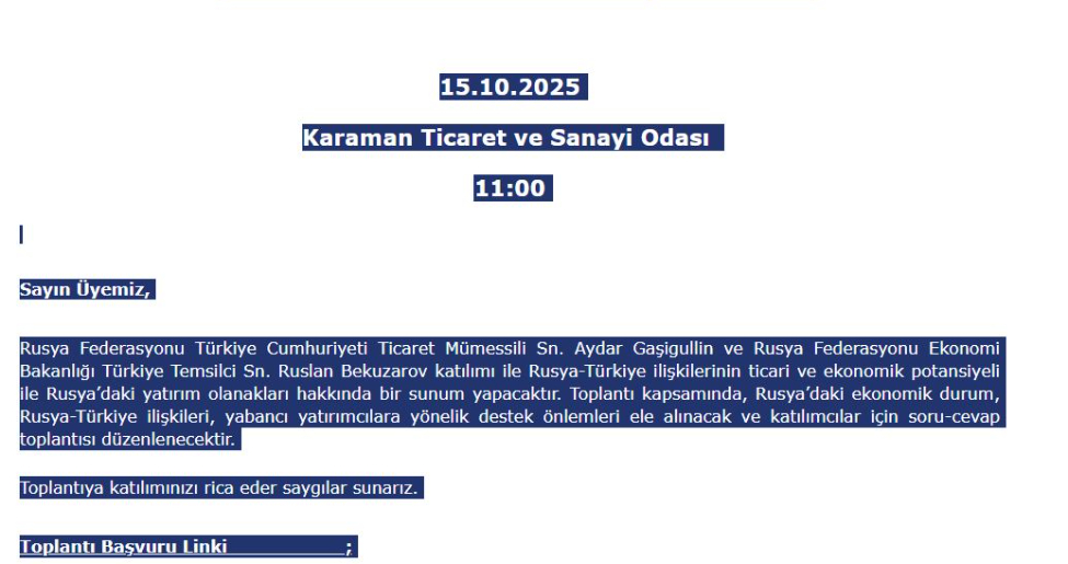 Rusya Federasyonu ve Karaman Ticaret Fırsatları Toplantısı
